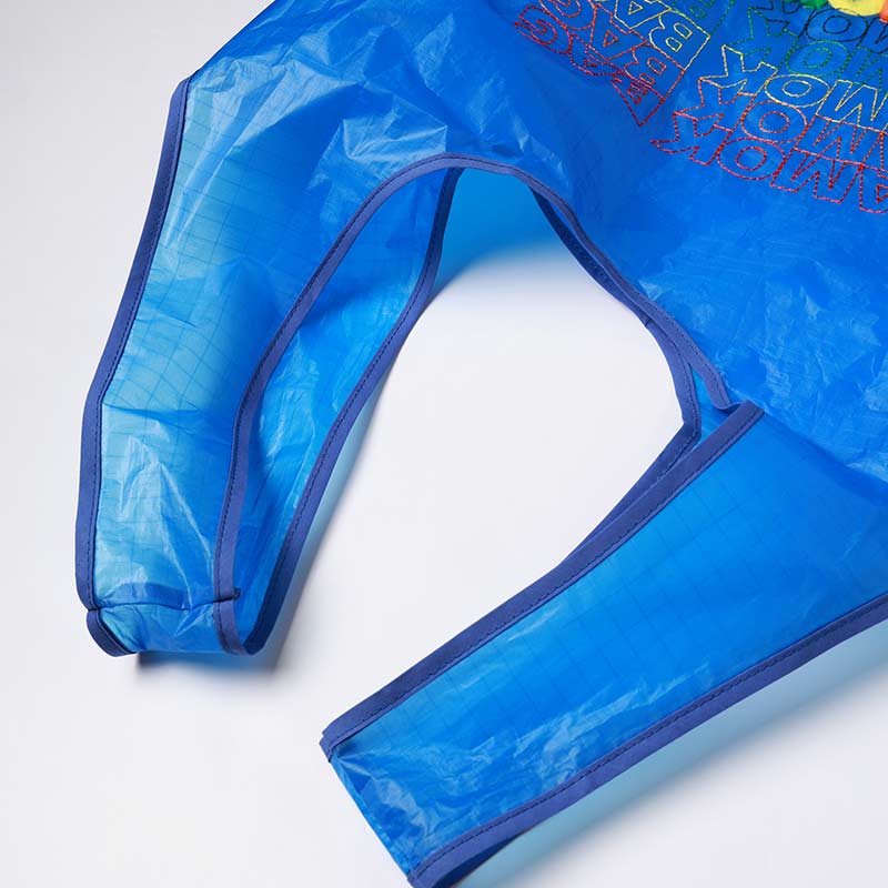 デザインモチーフ部分には某エコバックのモチーフをベースに6色の手刺繍と毛足の長い生地をボンディングで加工を施し立体的な表現も取り入れました。