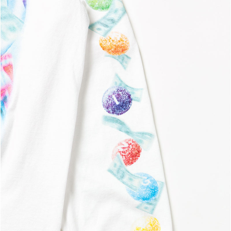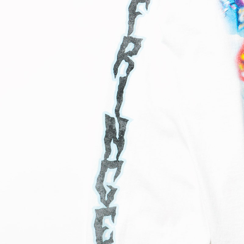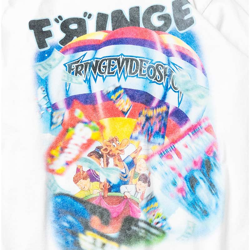 FRINGE VIDEO SHOP オリジナルグラフィックのロングスリーブTシャツ。