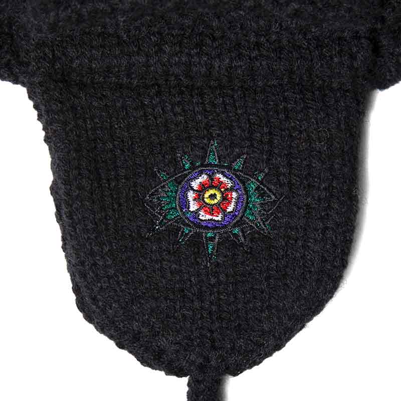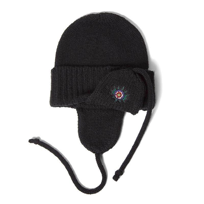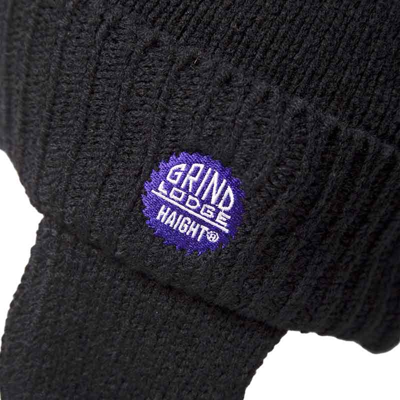 GRINDLODGEとのコラボレーションで仕上げたドッグイヤー付きのニットキャップ。