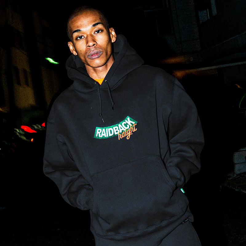 「NITRO MICROPHONE UNDERGROUND」の GORE-TEXこと“LA TORA JACKSON” がディレクションを手がける 「raidback® fabric」 とのコラボレーションフーディ。