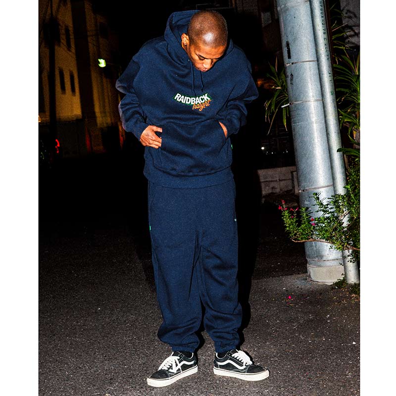 「NITRO MICROPHONE UNDERGROUND」の GORE-TEXこと“LA TORA JACKSON” がディレクションを手がける 「raidback® fabric」 とのコラボレーションフーディ。