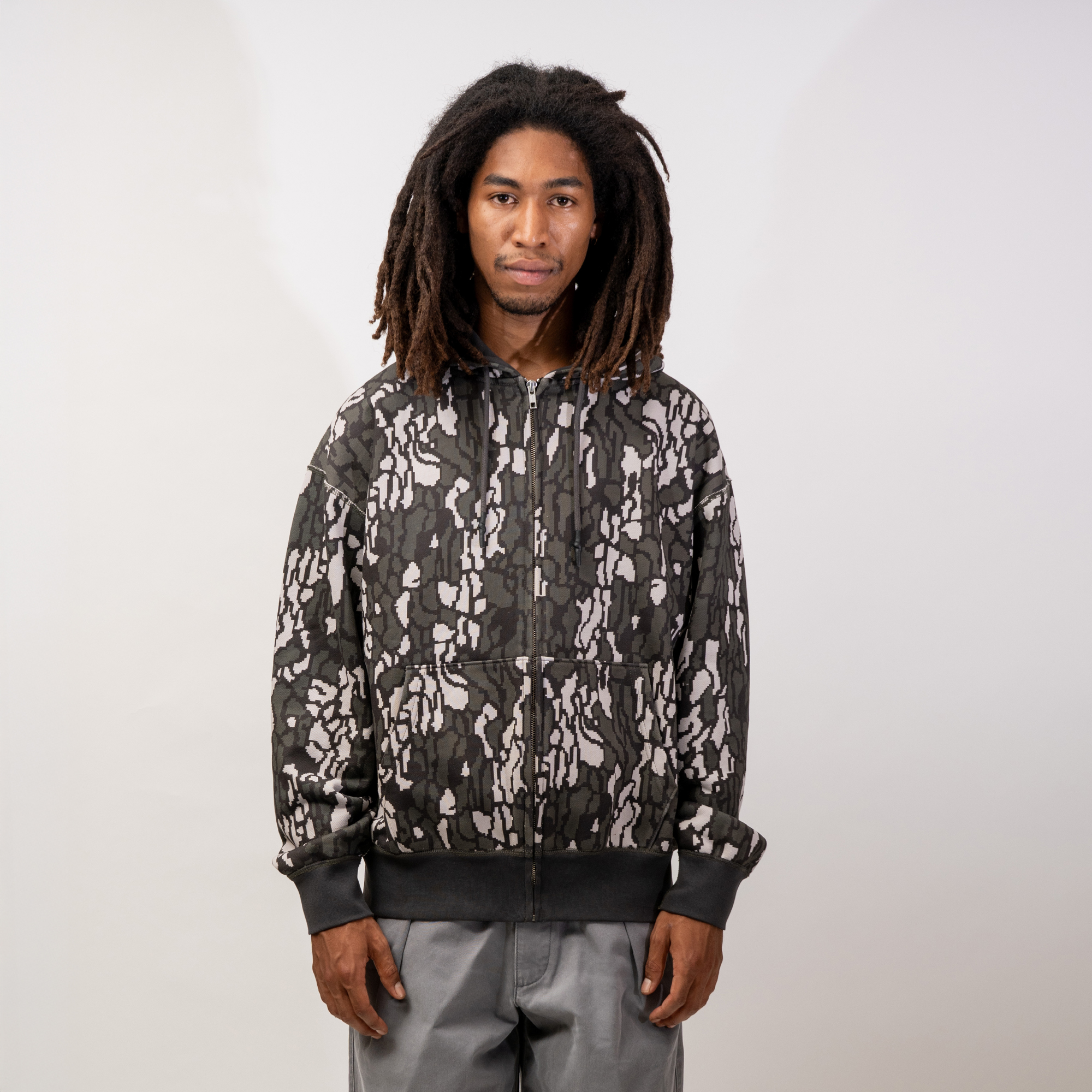 ヘヴィウエイトコットンを使用したカモフラージュZip Hoodieです。