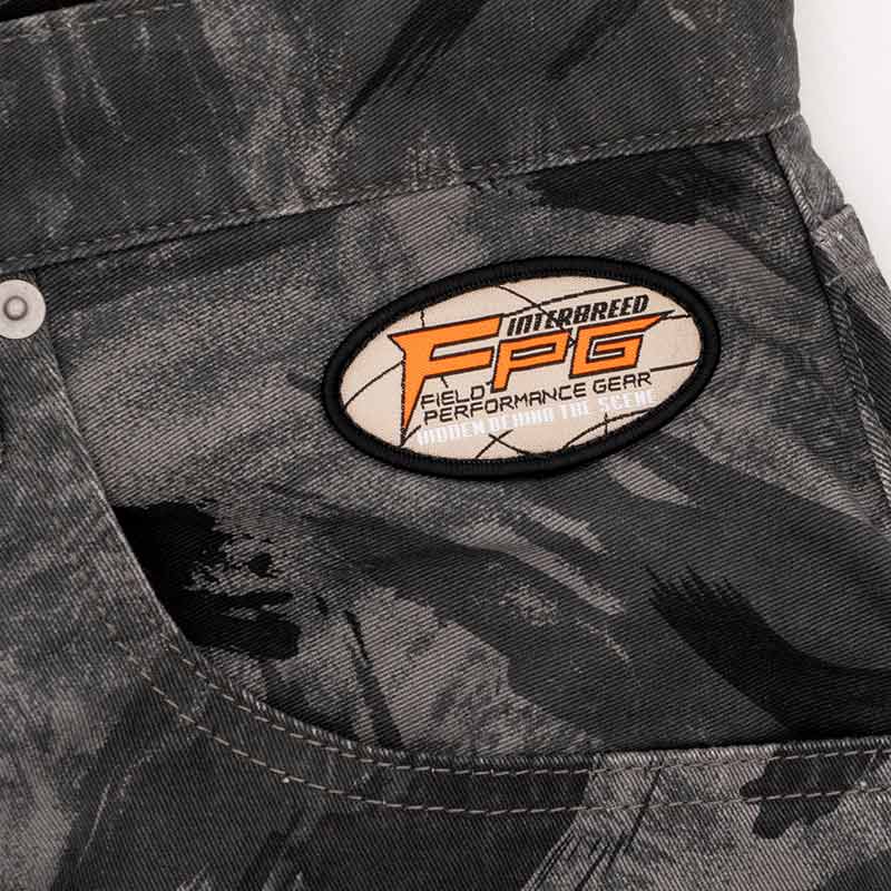 左フロントポケット上にはハンティングメーカーをイメージした、 INTERBREED FRG(Field Performance Gear)のワッペンが付属します。