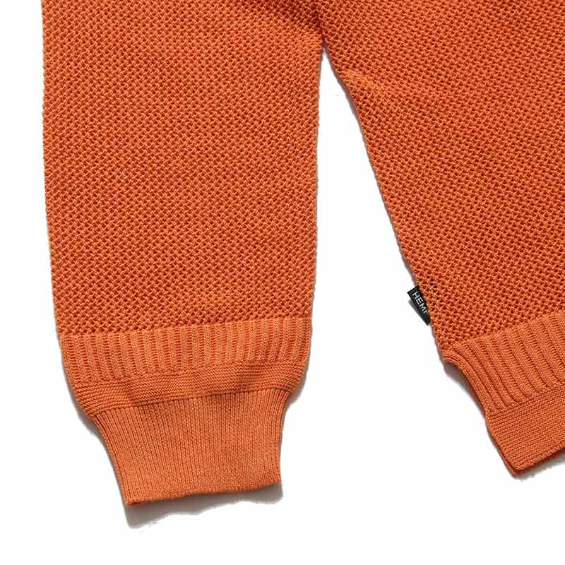一色で単調にならない様に、袖口、アームホール、裾部分それぞれに編地の切り替えが施されています。