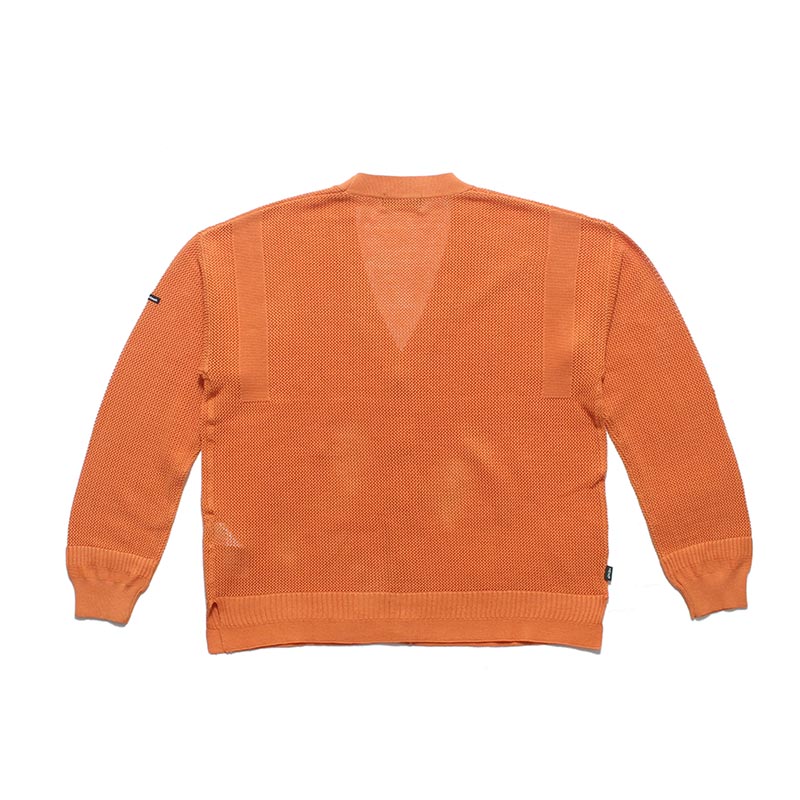 透け感がある編み地なので、インナーの色、グラフィックや柄によって全く別の表情となるので、合わせるアイテムによって様々なコーディネートをお楽しみいただけますl。