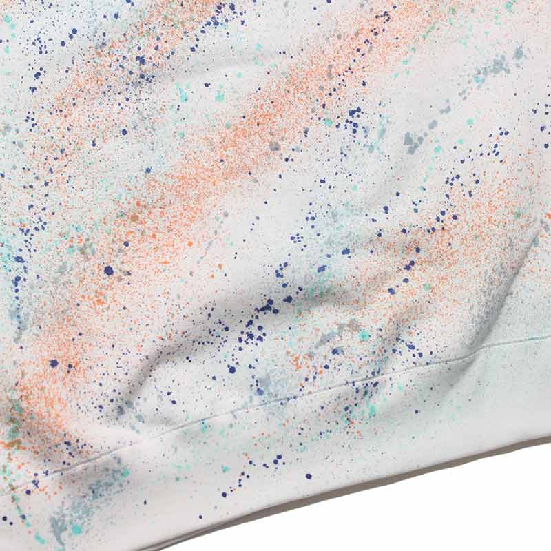 通常のプリントにあるインクをつけた際の厚みが一切なく、抜染による独特の色合いが魅力です。