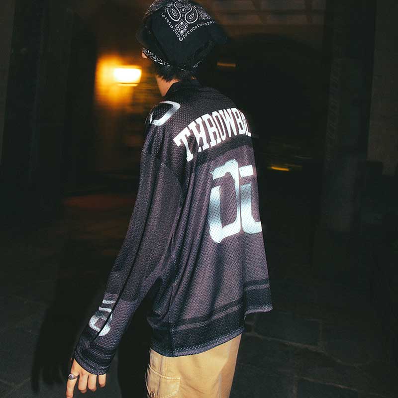 メタリックなナンバリングなどで 2000 年代を彷彿させる オールメッシュ素材のホッケージャージ。