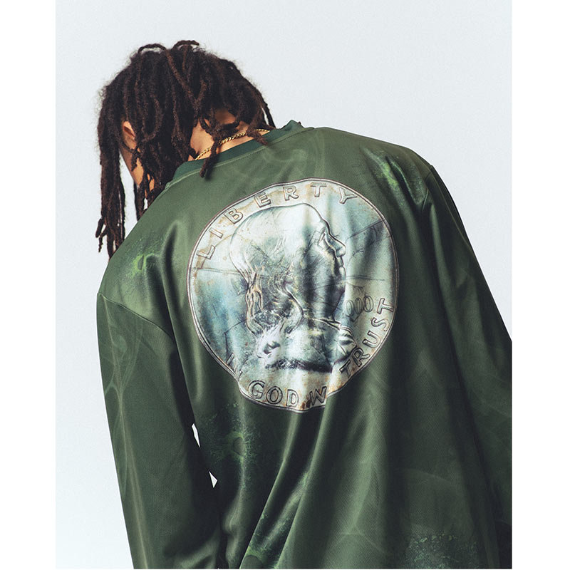 oo年代に現れ、時代を代表するアーティストの1st AlbumのからインスパイアされたデザインをJERSEYに落とし込んだTHROW BACKならではのアイディア。