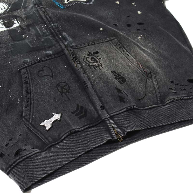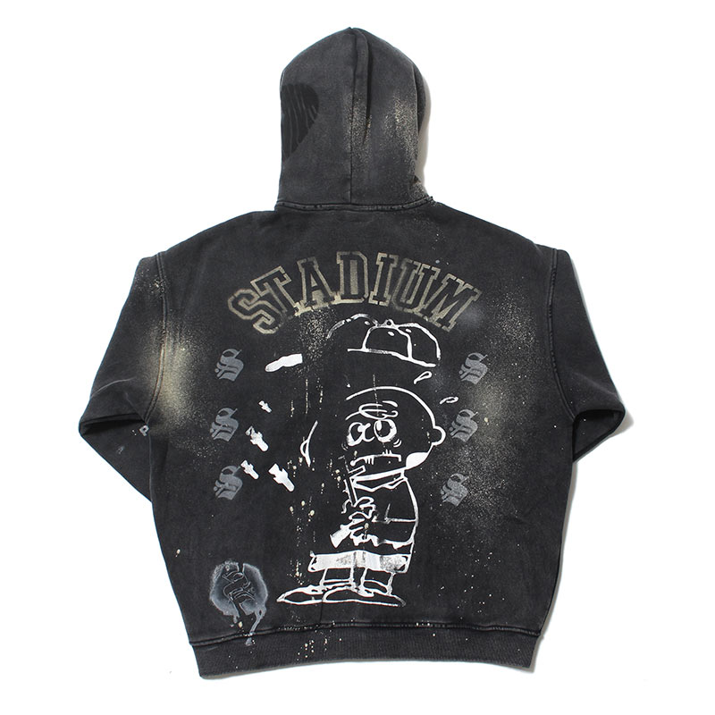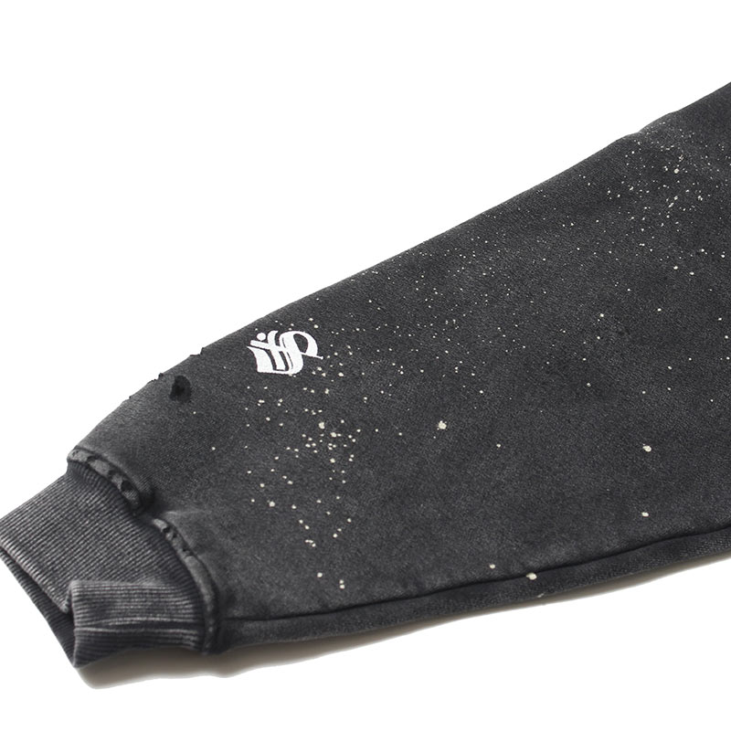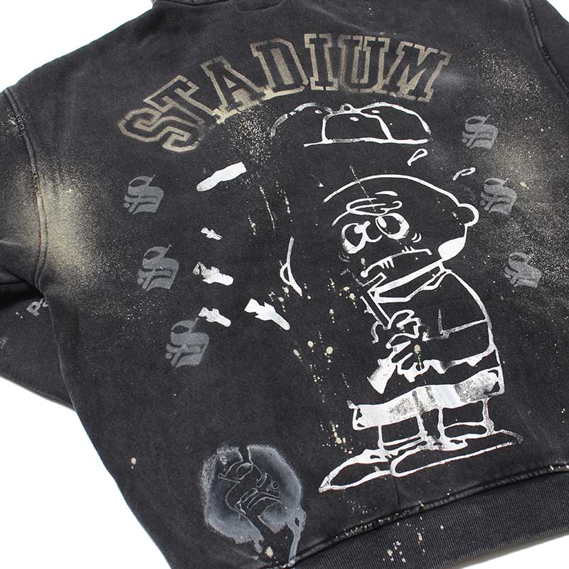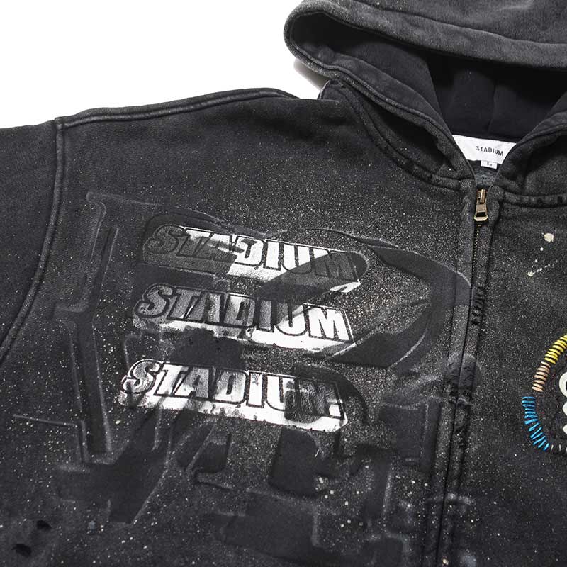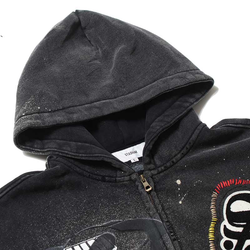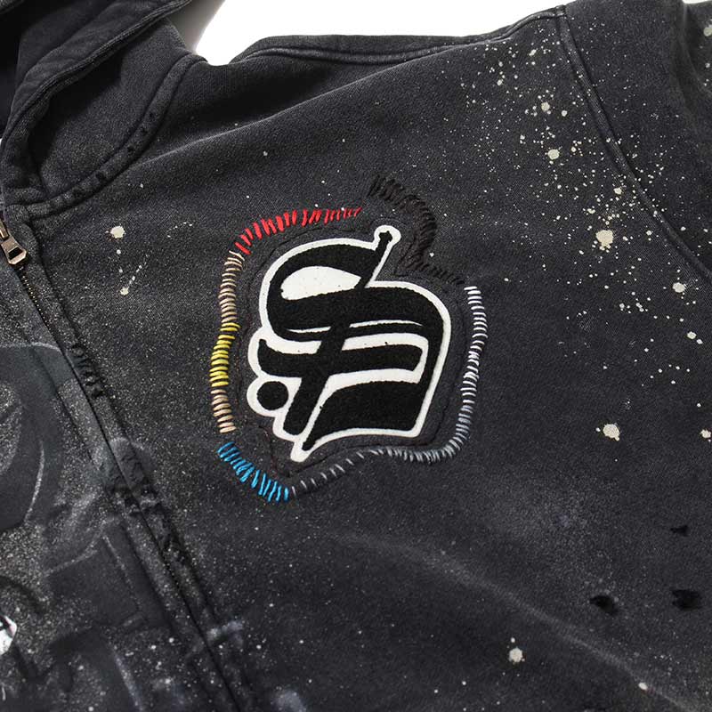 全てデザイナー、松岡氏本人によるハンドで落とし込んだ CLASSIC "S" LOGO WAPPEN ZIP HOODIE。