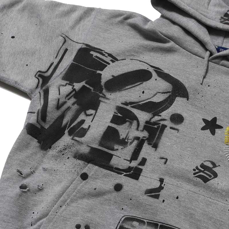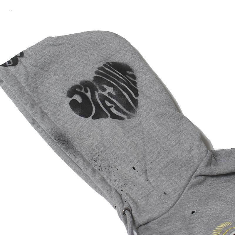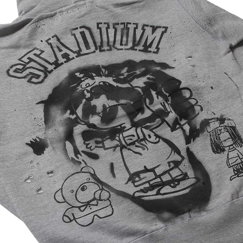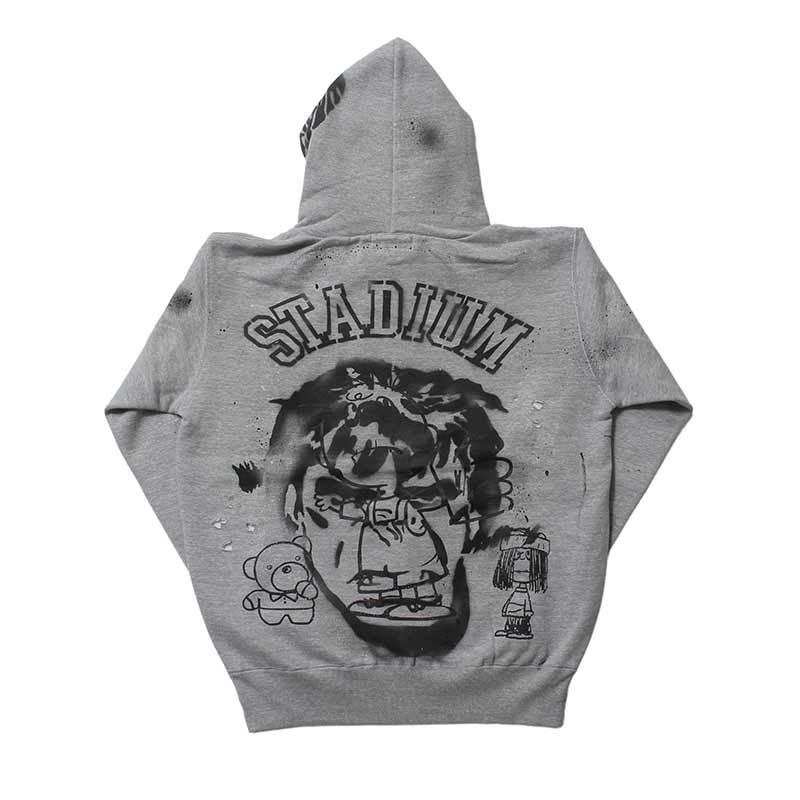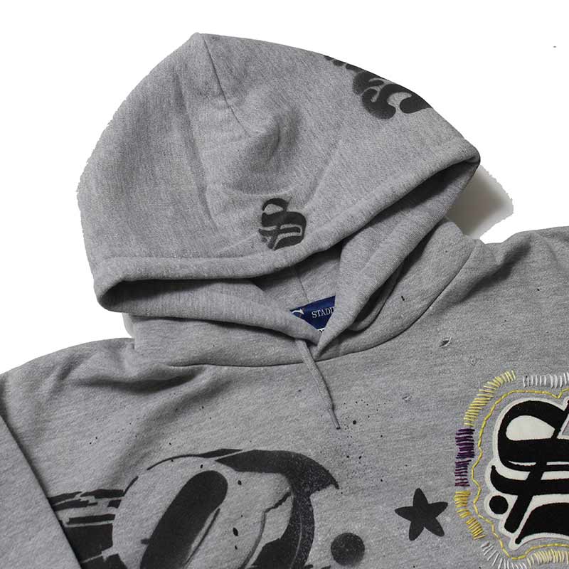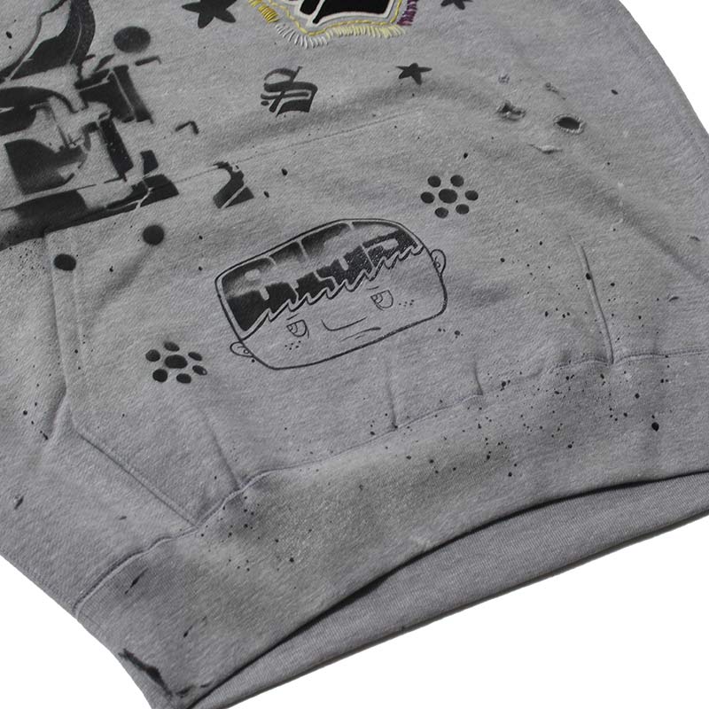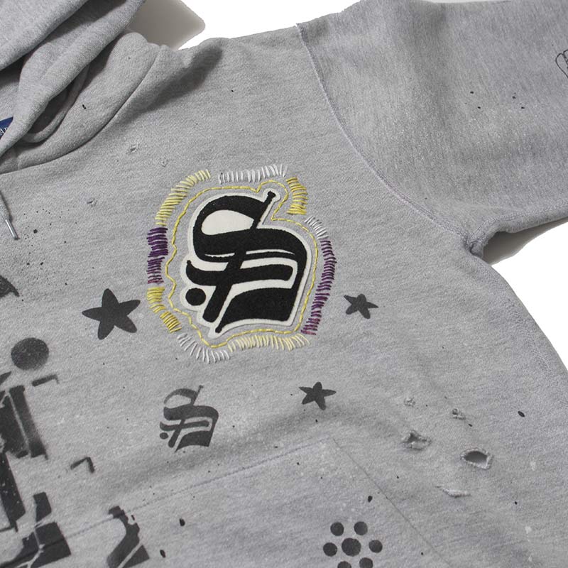 全てデザイナー、松岡氏本人によるハンドで落とし込んだ CLASSIC "S" LOGO WAPPEN ZIP HOODIE。